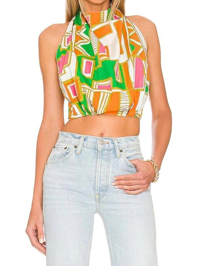 Show a little skin in this cute and casual crop top.This crop is made from airy cotton printed with a colourful Aztec inspired motif. It's designed in a soft, boxy silhouette with one folded pleat across the high neck. Prints and colours may vary slightly due to the handmade nature of each piece. 100% Sustainable Cotton. Gentle cold hand wash separately. Do not bleach. Dry flat in shade. Do not tumble dry. Dry clean professionally. Fit is true to size.