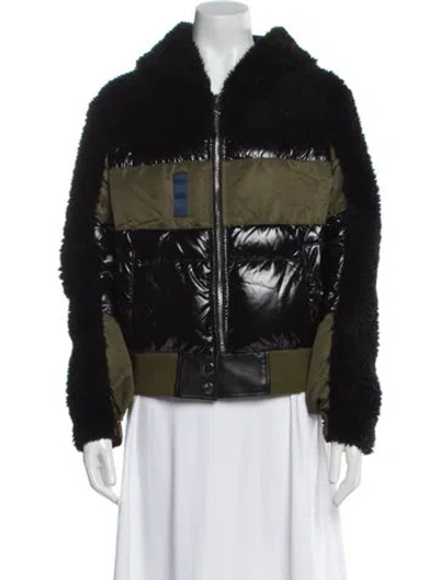Sylvie Schimmel Wool Down Jacket Black With Hood Fur Trim & Stand Collar Slit Pockets & Zip Closure Fit: Jackets by Sylvie Schimmel typically fit true to size. | Sylvie Schimmel Wool Down Jacket in Black, Women's US6, FR38 | M