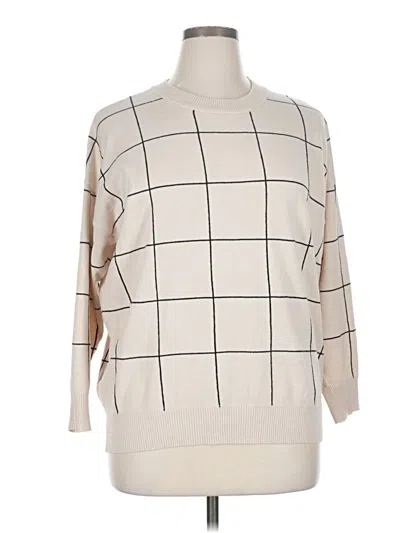 T Tahari Pullover Sweater, Size: 1X. Item Details: Tan, Checkered/Gingham Pattern, Mock Neckline, 3/4 Sleeve, Flannel, Women's Tops, Polyester/Nylon