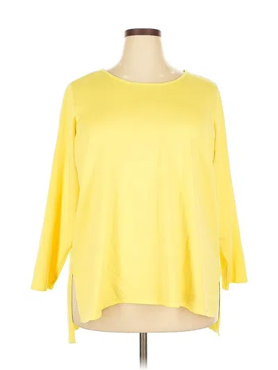 T Tahari Pullover Sweater, Size: 2X. Item Details: Yellow, Boatneck, 3/4 Sleeve, Women's Tops, Rayon/Nylon