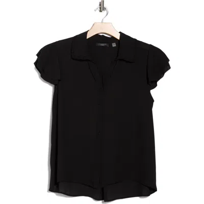 T TAHARI Tiered Flutter Sleeve Button-up Shirt In Black