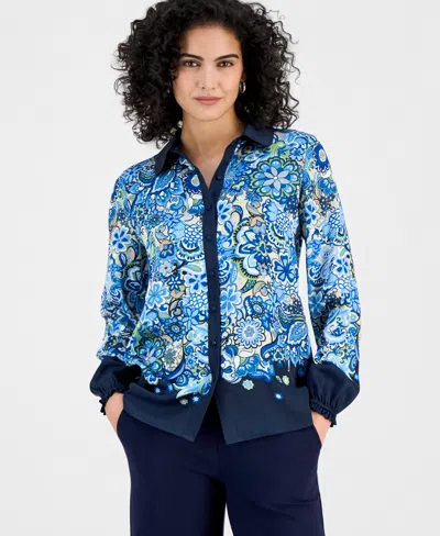 T TAHARI Women's Paisley Button-front Blouse In Blue