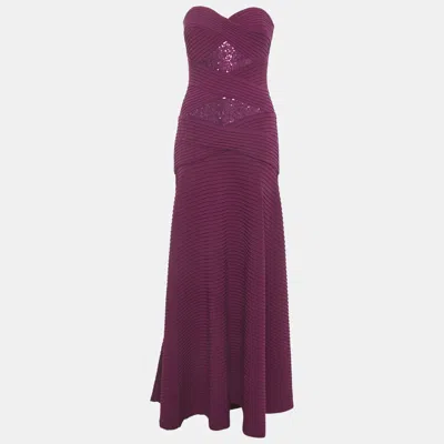 Pre-owned Burgundy Sequin Embellished Jersey Strapless Gown Xs