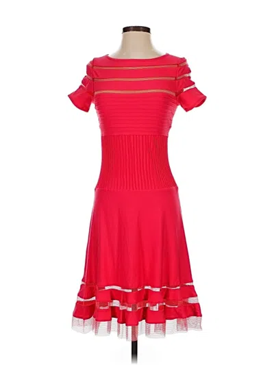 Tadashi Shoji Casual Dress, Size: X-Small. Item Details: Red, Fit & Flare, Boatneck, Knee Length, Short Sleeve, Ruffles, Women's Dresses