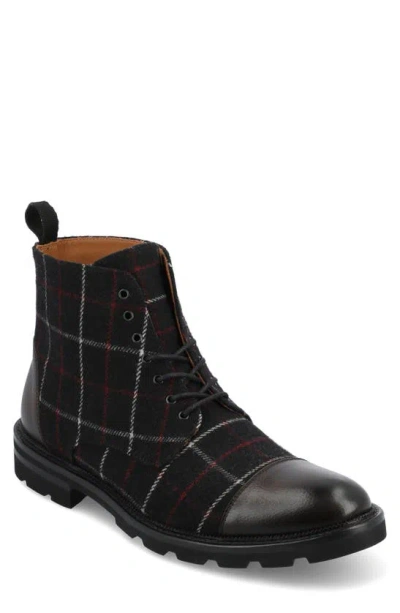 Show off this handsome cap-toe boot featuring a rich jacquard or durable twill upper grounded by a leather sole with lugged rubber treads.