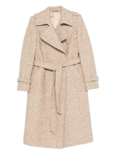 TAGLIATORE Belted Herringbone-pattern Coat In Neutral