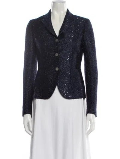 Tagliatore Blazer Blue Sequin Embellishments & Pointed Collar Slit Pockets & Button Closure Fit: Jackets by Tagliatore typically fit true to size. | Tagliatore Blazer in Blue, Women's S