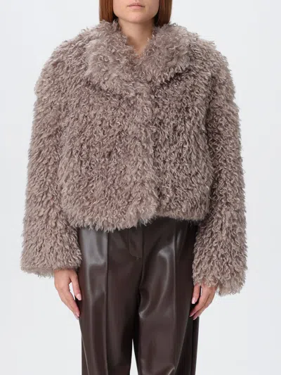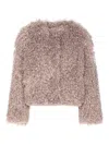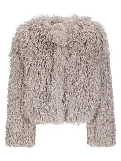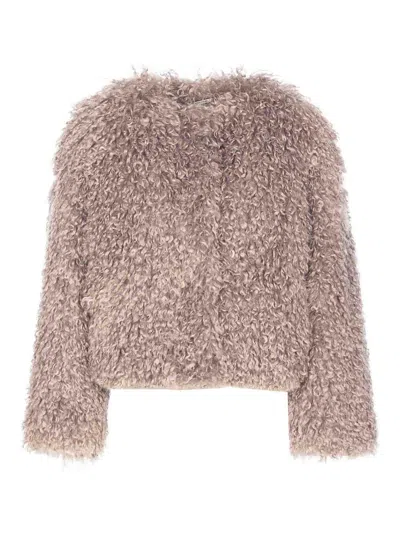 TAGLIATORE Cropped Textured Coat With Fluffy Faux Fur Exterior In Nude