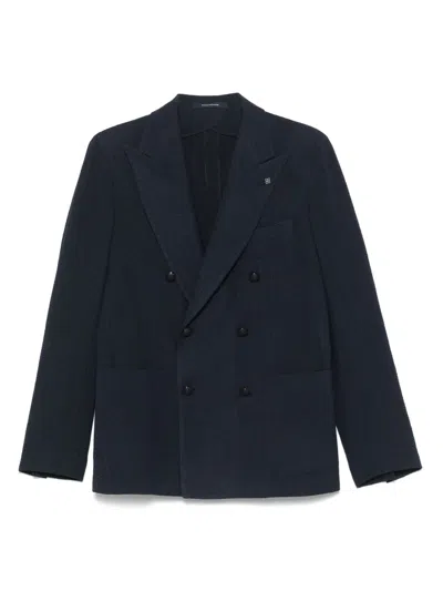 TAGLIATORE Blue Double-breasted Jacket In Virgin Wool
