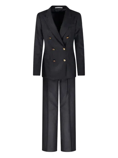 dark grey double-breasted fastening gold-tone buttons long sleeves straight-leg trousers. Colour. : Blacks and greys. Composition. : 93% lana 7%seta. MPN. : TPARIGI10BAD520038A40003542. .
