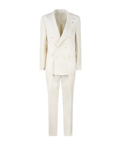 TAGLIATORE Linen Double-breasted Tailored Suit In White