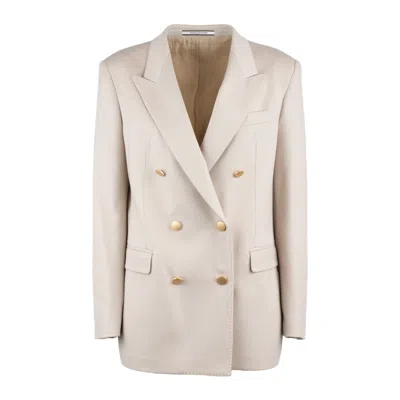 TAGLIATORE Natural Double-breasted Cashmere Jacket In Neutral