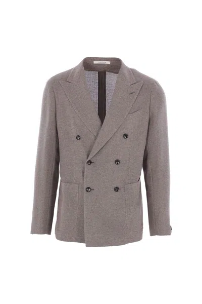 TAGLIATORE Structured Double-breasted Blazer With Notch Lapel In Gray