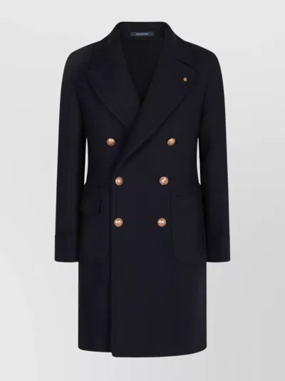 TAGLIATORE Wool Coat With Notched Lapels And Back Tab In Blue