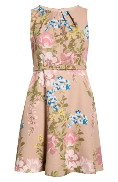 TAHARI ASL Floral Belted Pleat Neck Dress In Multi