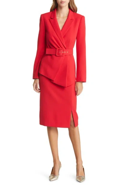 TAHARI ASL Nested Belted Jacket And Skirt In Red