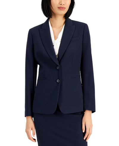 TAHARI ASL Petites Womens Pinstripe Business Two-button Blazer In Blue