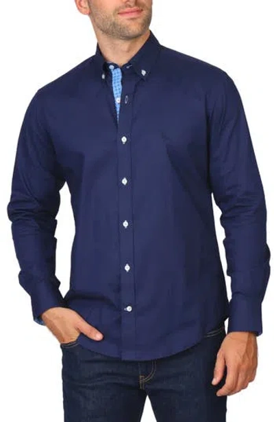 TAILORBYRD Solid Stretch Button-down Shirt In Navy