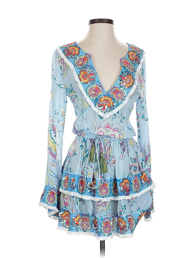 Taj Cocktail Dress, Size: Small. Item Details: Blue, Plunge Neckline, Short Length, Long Sleeve, Women's Dresses, 100% Viscose