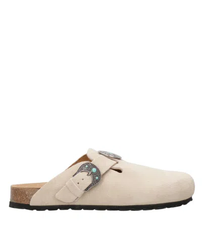 - Suede calfskin leather - Silver metal and turquoise stone details - Rounded toe - Adjustable strap with buckle inserted on upper - Logo-embossed insole - Anatomical sole - Rubber bottom