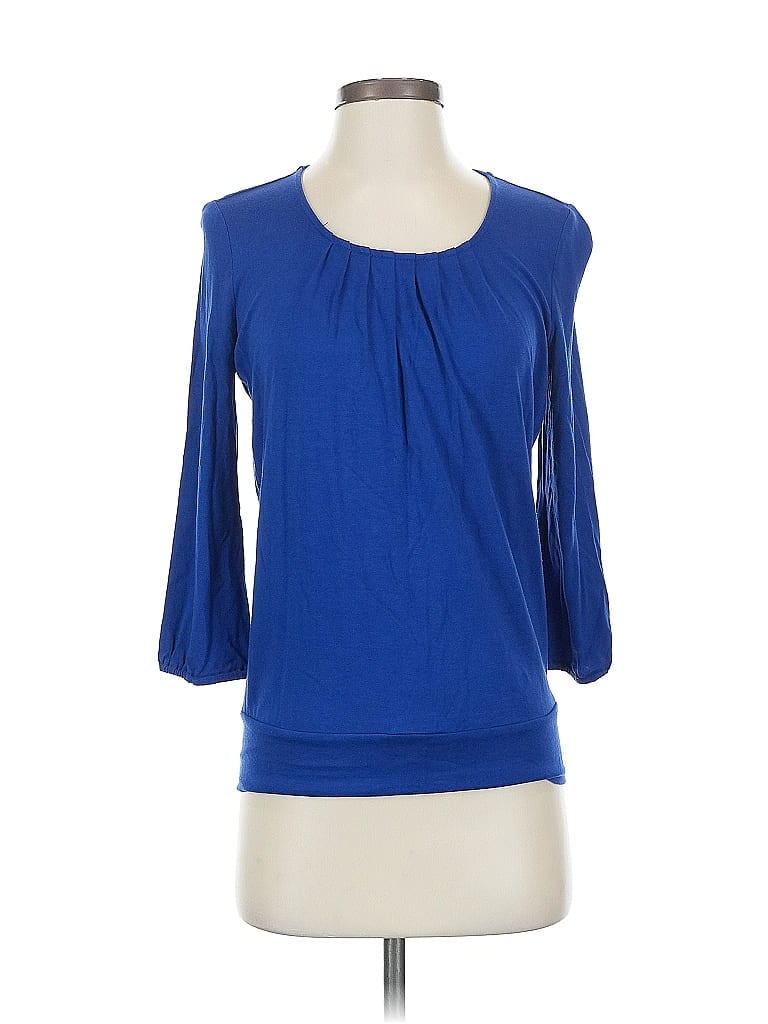 Pre-owned 3/4 Sleeve Top Blue Scoop Neck Tops