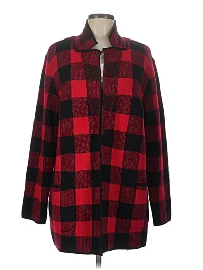 Talbots Coat, Size: Large. Item Details: Red, Plaid Pattern, Women's Jackets & Outerwear, Cotton/Acrylic/Polyester