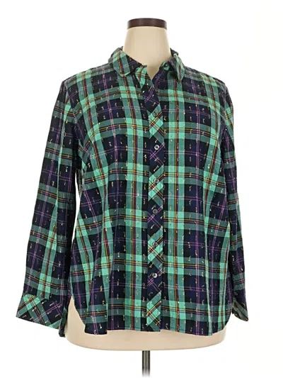 Talbots Long Sleeve Button Down Shirt, Size: 18. Item Details: Green, Plaid Pattern, Square Neckline, Flannel, Women's Tops, Cotton/Metallic