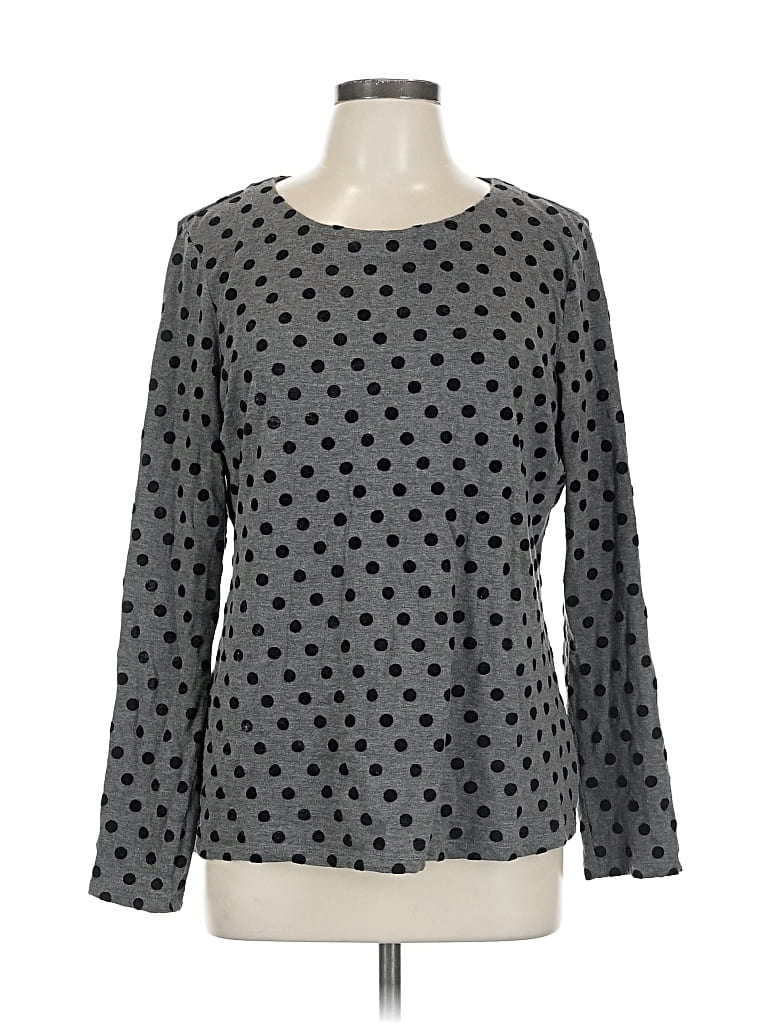 Talbots Long Sleeve Top, Size: Large. Item Details: Gray, Polka Dots Pattern, Square Neckline, Women's Tops, 100% Cotton
