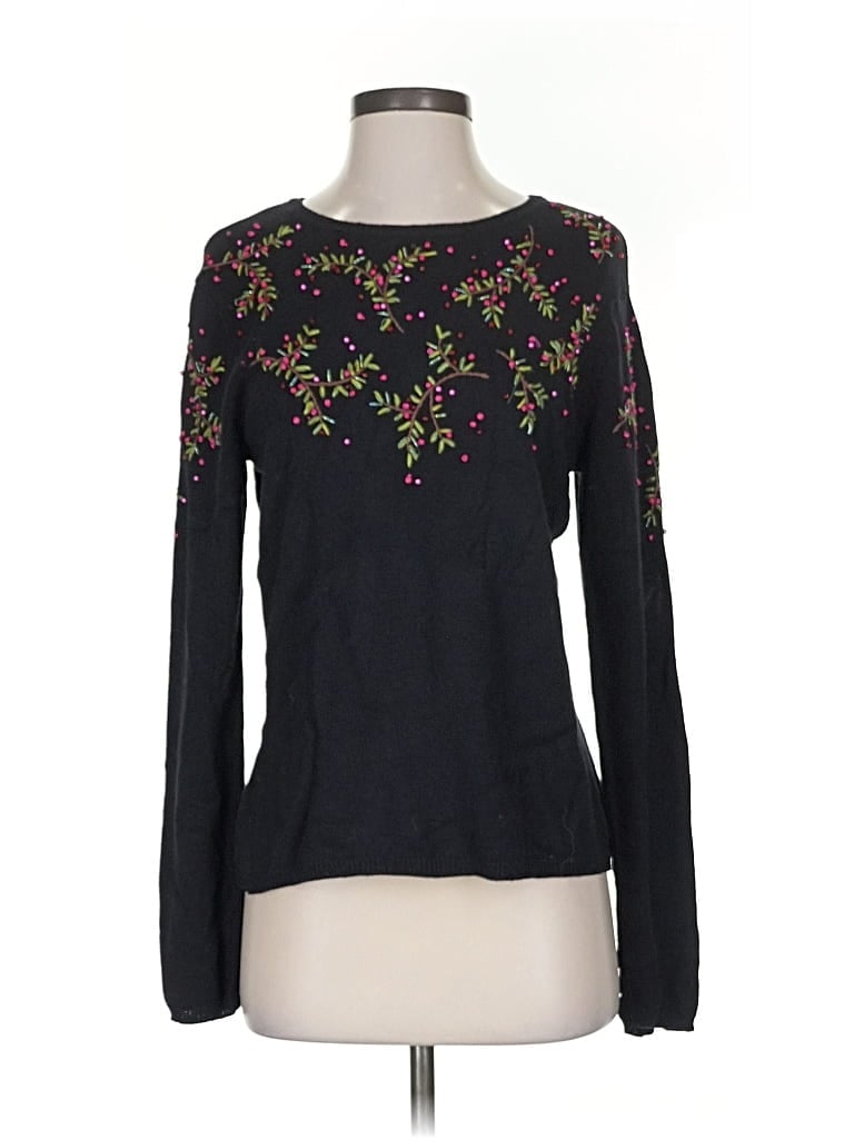 Talbots Pullover Sweater, Size: Small. Item Details: Black, Floral Pattern, Scoop Neck, Long Sleeve, Beaded, Women's Tops, Cotton/Rayon/Nylon