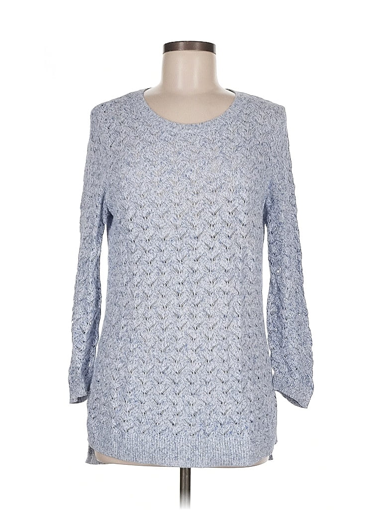 Talbots Pullover Sweater, Size: Medium. Item Details: Blue, Keyhole Neckline, 3/4 Sleeve, Women's Tops, Cotton/Linen