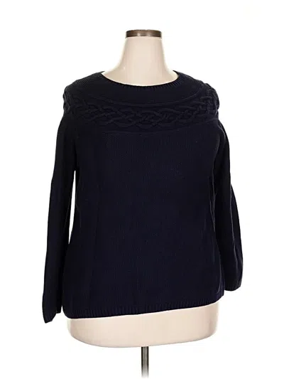 Talbots Pullover Sweater, Size: 2X. Item Details: Blue, Boatneck, 3/4 Sleeve, Velvet, Women's Tops, Cotton/Nylon/Rayon