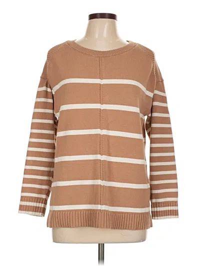 Talbots Pullover Sweater, Size: Large. Item Details: Brown, Stripes Pattern, Scoop Neck, Long Sleeve, Women's Tops, 100% Cotton