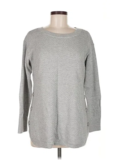 Talbots Pullover Sweater, Size: Medium. Item Details: Gray, Scoop Neck, Long Sleeve, Women's Tops, Cotton/Nylon/Rayon