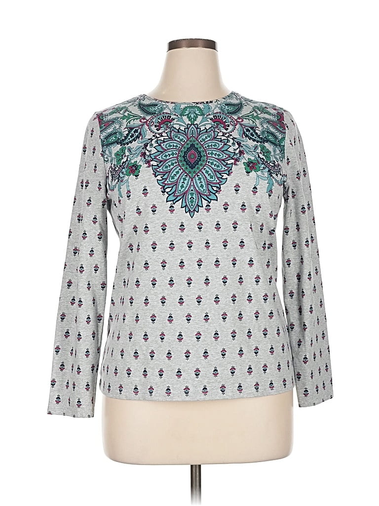 Talbots Pullover Sweater, Size: X-Large. Item Details: Silver, Paisley Pattern, Keyhole Neckline, 3/4 Sleeve, Beaded, Women's Tops, Cotton/Spandex