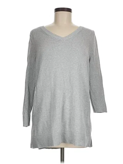 Talbots Pullover Sweater, Size: Medium. Item Details: Silver, V Neck, 3/4 Sleeve, Women's Tops, Pima Cotton/Polyester/Metal