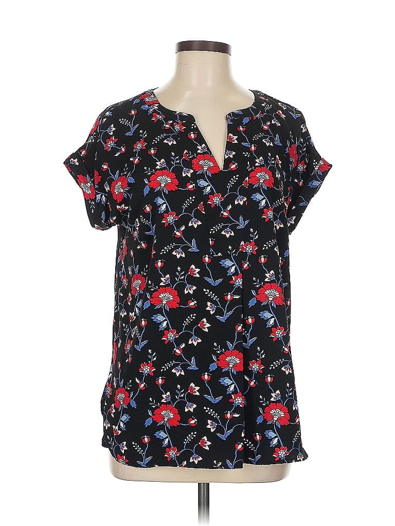 Talbots Short Sleeve Blouse, Size: Medium. Item Details: Black, V Neck, Short Sleeves, Women's Tops, 100% Polyester