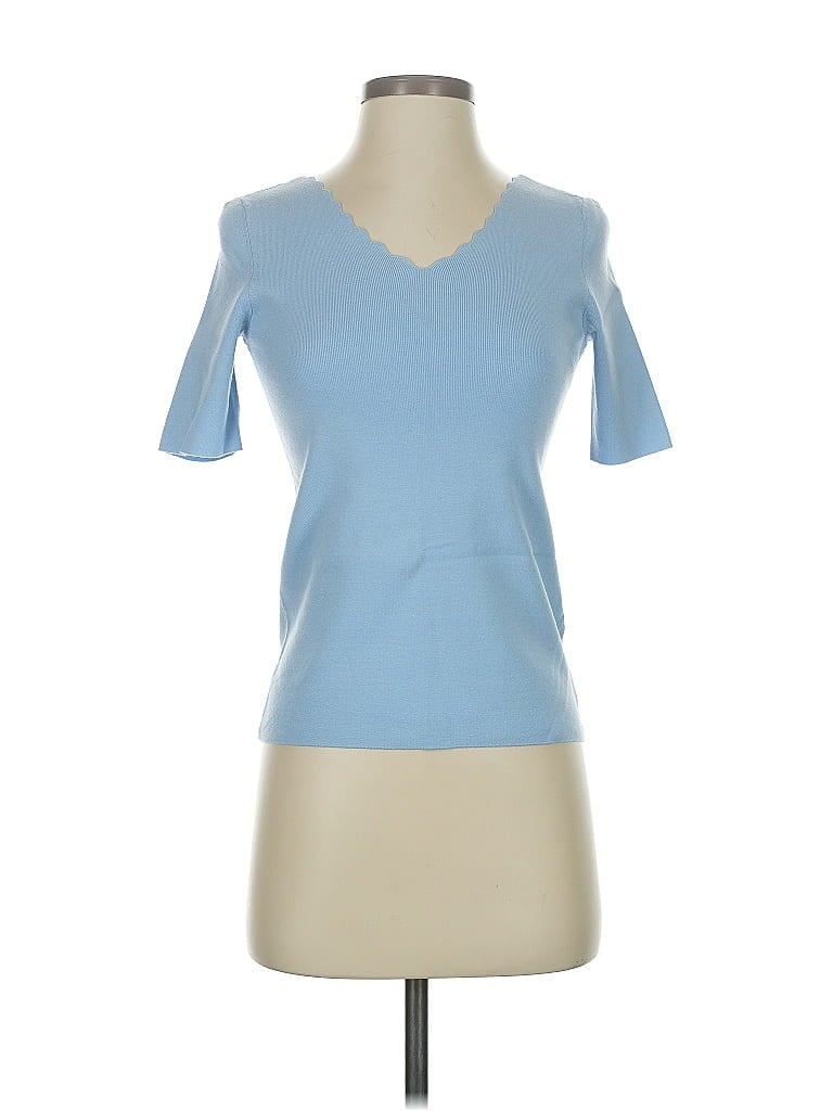 Talbots Short Sleeve Turtleneck, Size: P. Item Details: Blue, V-Neck, Short Sleeves, Women's Tops, Polyester/Viscose, True To Size