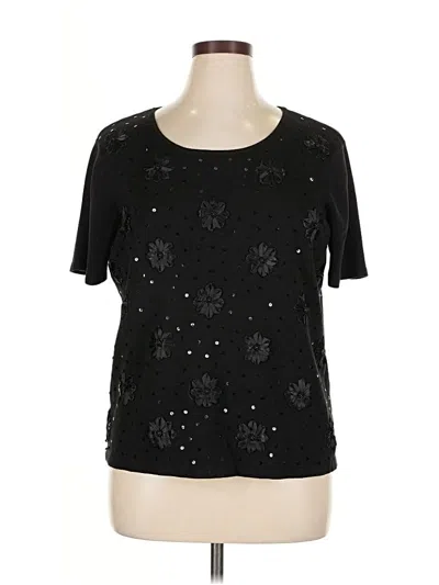 Talbots Silk Pullover Sweater, Size: 1X. Item Details: Black, Floral Pattern, Scoop Neck, Short Sleeves, Sequins & Rhinestones, Women's Sweaters & Sweatshirts, Silk/Nylon
