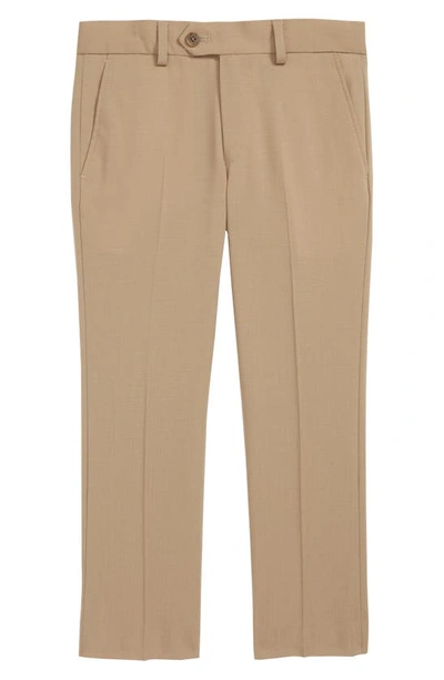 TALLIA Kids' Solid Wool Blend Flat Front Trousers In Tan