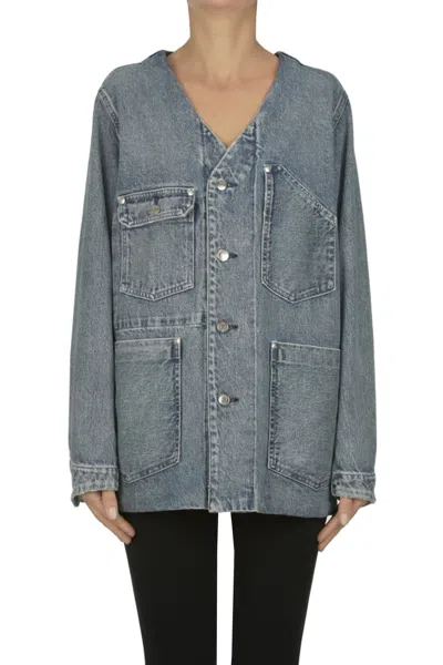 Oversized denim jacket, metal buttons, four pockets at front, V-neckline. COMPOSITION: 100% Cotton Made in Japan