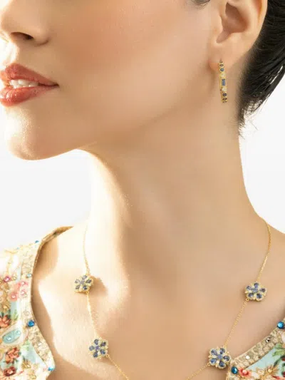 gold-tone bezel-set round-cut blue sapphires hoop style Normal everyday use and external agents may reduce the lustre of gemstones and gold surfaces. To maintain, use specific, non-abrasive products specially meant for cleaning jewellery.