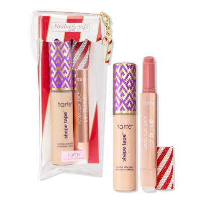 HL25WRDWNRSBSTSLRSSTG 16NFRLGHTNTRL. Benefits: 2 icons, 1 legendary set (to keep or gift). shape tape concealer + FREE limited-edition maracuja juicy lip plump. lip plump with limited-edition rhinestone cap & candy cane scent . America's #1 concealer brand* with full coverage, natural matte finish thats ideal for oily skin. bow & go wrapped in a clear reusable pouch & topped with candy cane charm. dermatologist tested. *Source: Circana, U.S. Prestige Beauty Total Measured Market, Makeup Sales, January-December 2024 combined. Features: 100% saw immediate hydration** & more plump lips*** with maracuja juicy lip plump. 100% said shape tape concealer doesnt crease or look cakey, leaving skin looking & feeling smoother****. 100% said shape tape concealer covers dark circles & undereyes look smoother****. **based on a clinical study of 30 subjects. ***based on a clinical study of 30 subjects after 10 minutes. ****based on a consumer panel study of 32 subjects. Key Ingredients: maracuja juicy lip plump. maracuja oil: rich in essential fatty acids & vitamin C for smoother, softer-looking lips. hyaluronic acid: moisturizes & plumps look of lips. 10+ superfruit complex: antioxidant-rich to help smooth, nourish & hydrate. shape tape shea & mango butters: moisturizes & conditions. licorice root: brightens & evens look of skin.