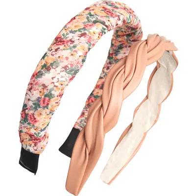 This pack of two headbands gives you two stylish options for elevating your 'do. Colorful flowers pattern one headband, while a twisted design details the other. Pack of two headbands Textile/plastic Imported
