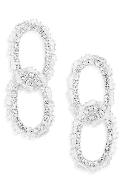 Rows of brilliant crystals shimmer along the slender oval links of these special-occasion drop earrings, catching the light with every move. Post back Goldtone or silvertone plate/crystal glass Imported