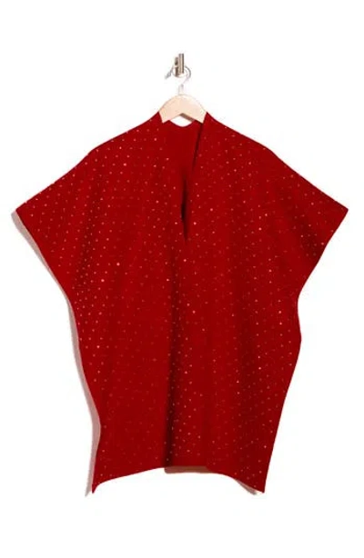 Scattered crystals embellish a solid short-sleeve knit ruana that brings just-right sparkle to any outfit. 30 1/2" length (size Small) Open front Short sleeves 100% acrylic Hand wash, line dry Imported