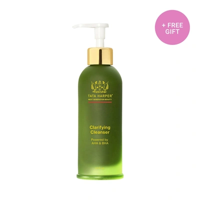 Tata Harper Clarifying Cleanser. Buy Any Full-Size Tata Harper Cleanser Get A Free Gift Cosmetics Pouch With Clarifying Cleanser 15ml + Clarifying Moisturizer 10ml. . This Product Is: . a foaming gel cleanser that targets blemish-causing impurities. Good for:. oily, blemish-prone, combination skin types. Why We Love It: . . Tata Harper Clarifying Cleanser targets impurities to give you a deep-clean feel and comfortably matte finish without drying out your skin. This facial cleanser has been formulated to target blemish-causing impurities and works to balance oil with natural salicylic acid and AHAs.. . Prickly Pear Flower Enzymes provide gentle enzymatic exfoliation to help clear away buildup without irritation or over-drying. Wild Crafted Juniper Fruit helps to balance without disrupting the natural pH-balance for a healthy-looking, matte complexion. Chlorella helps nourish the skin and gives the formula its signature green color.. . .
