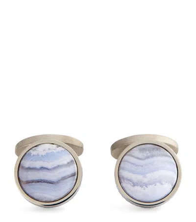 TATEOSSIAN Agate Circular Cufflinks In Silver