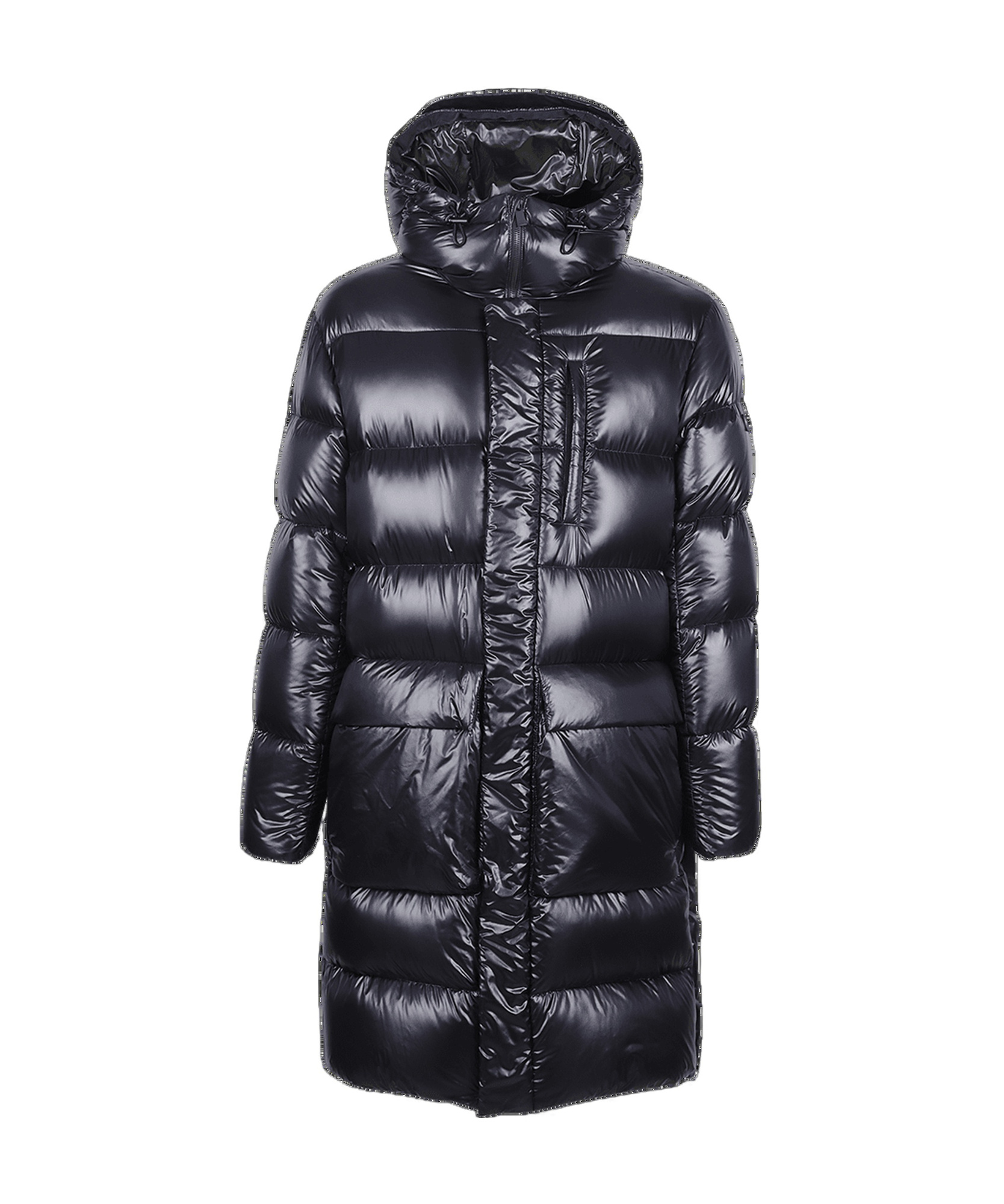 Long, oversized version, with a brim hood, zipper opening and closing, two 3D patch pockets, a chest pocket and thermal pockets.