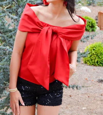 TCEC Bowtiful Bliss Off The Shoulder Top In Red