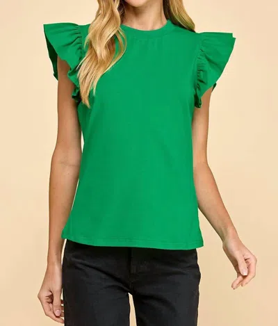 TCEC Laurie Flutter Sleeve Top In Bright Leaf Green